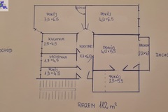 Rozkład mieszkania i wielkości pomieszczeń podane są na rzucie zamieszczonym wśród zdjęć.