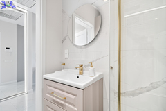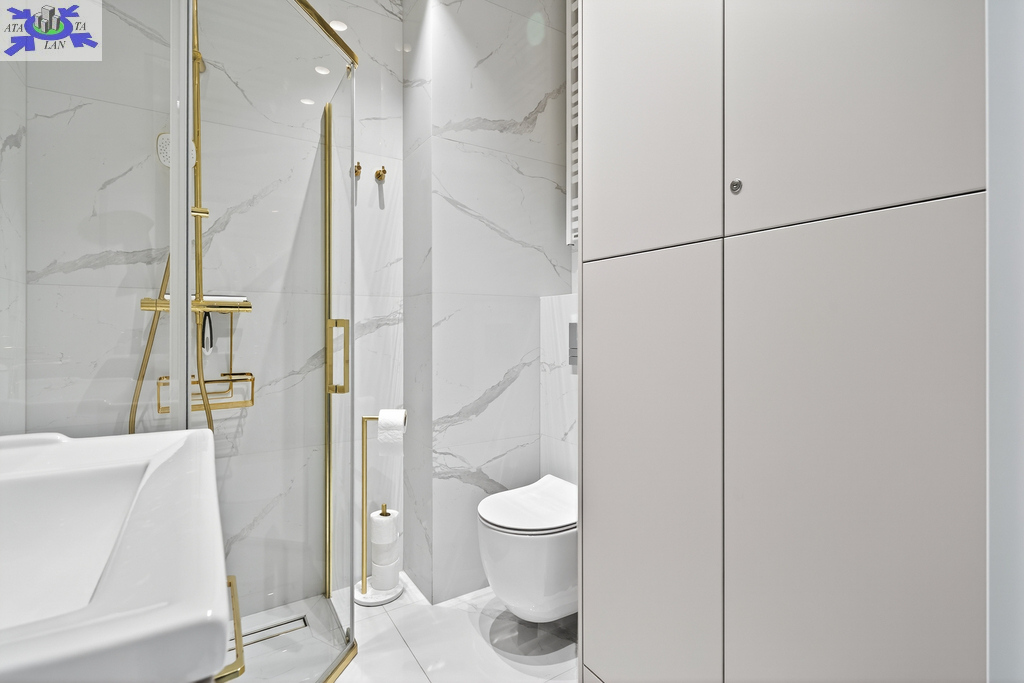 elegancką łazienkę z prysznicem,