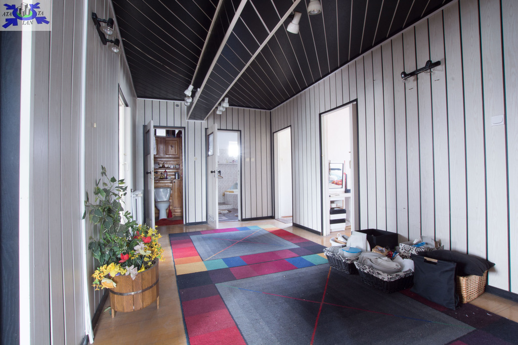 Na piętrze kolejne mieszkanie dwu pokojowe z kuchnią i łazienką (ok. 70m2)