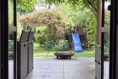 W pełni zagospodarowany ogród - z tarasem, placem zabaw - drewnianym domkiem z huśtawkami, warzywniakiem i miejscem relaksu