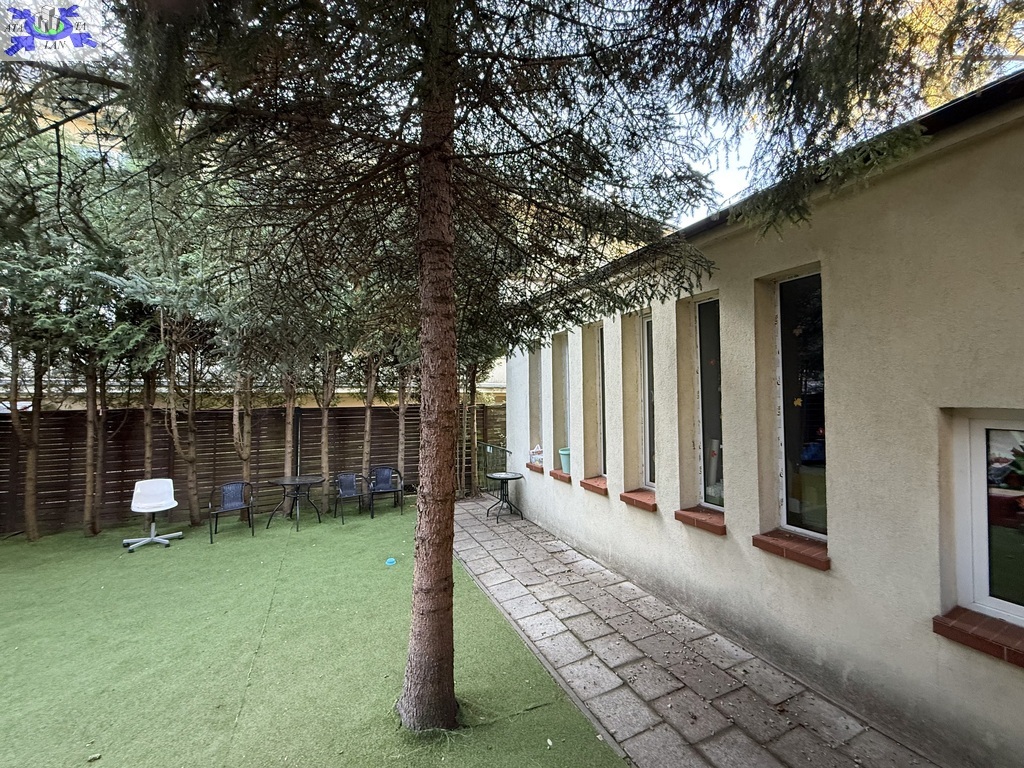 Drugi parterowy budynek usługowo-biurowy z lat 60-tych, obecnie przystosowany jako przedszkole, o powierzchni około 111 m2 i osobnym wejściu daje niezwykle szeroką możliwość adaptacji pod gabinety lekarskie, usługi kosmetyczne, biura lub na cele mieszkalne.