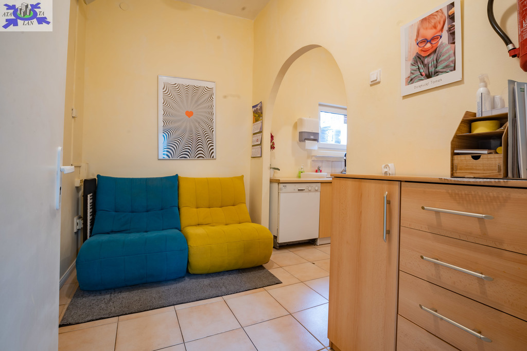 Budynek usługowo-biurowy o powierzchni ok. 111 m2 składa się z jednej dużej sali, dwóch pokoi, dwóch łazienek, kuchni i korytarza lokal z oddzielnym wejściem i osobnym adresem od innej ulicy niż dom - stwarza możliwość prowadzenia niezależnej działalności lub wydzielenia przestrzeni inwestycyjnej.