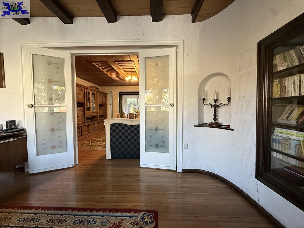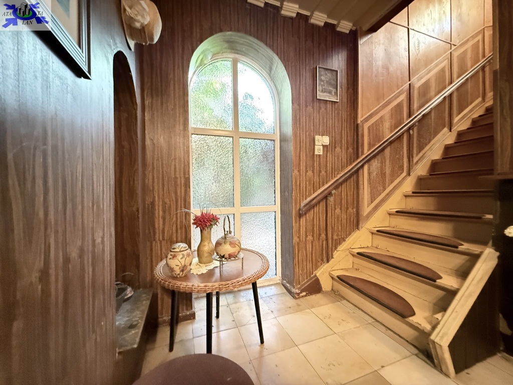Dom o powierzchni ok. 140 m2 obejmuje przyziemie z pokojem i łazienką oraz pomieszczeniami gospodarczymi, parter z dwoma dużymi pokojami (w tym jeden z wykuszem), kuchnią, łazienką, garderobą, hall'em i zabudowaną werandą, piętro z dwoma pokojami, łazienką, balkonem od strony ogrodu oraz użytkowy strych wnętrza zachowały wiele oryginalnych detali, takich jak drewniane sufity i podłogi, co pozwala na stworzenie wnętrza z charakterem. Budynek wymaga modernizacji i aranżacji według własnej wizji, co stanowi otwartą przestrzeń dla przyszłego właściciela.