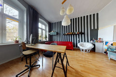 Niezwykle klimatyczne i funkcjonalne mieszkanie o powierzchni 99,24 m2, usytuowane na pierwszym piętrze poniemieckiej kamienicy w centrum Szczecina.