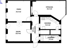 - trzy duże pokoje - wszystkie powiązane w układzie amfiladowym, dzięki czemu mamy możliwość dostosowania mieszkania w prosty sposób do własnych potrzeb. Pokoje rozchodzą się z przestronnego przedpokoju, z którego wchodzimy również do kuchni, łazienki oraz dużego pomieszczenia gospodarczego.