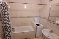 Łazienka z wanną w glazurze i terakocie, osobne wc z umywalką