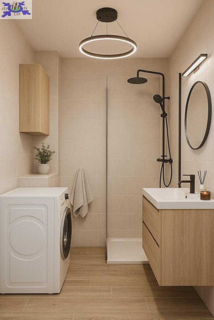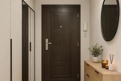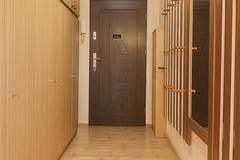 duży, przestronny korytarz z miejscem na szafy w zabudowie.