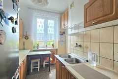 Standard i media Mieszkanie nadaje się do zamieszkania, choć kuchnia i łazienka mogą wymagać odświeżenia.