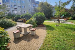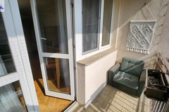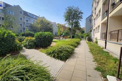 Okna mieszkania wychodzą na dwie strony świata. Salon z balkonem typu logia od południa z widokiem na ładnie zagospodarowane podwórze z licznymi nasadzeniami, alejkami i ławeczkami.