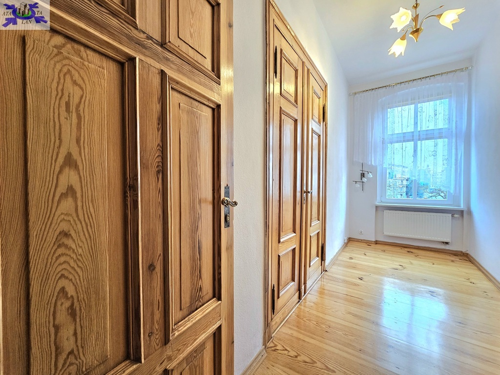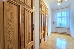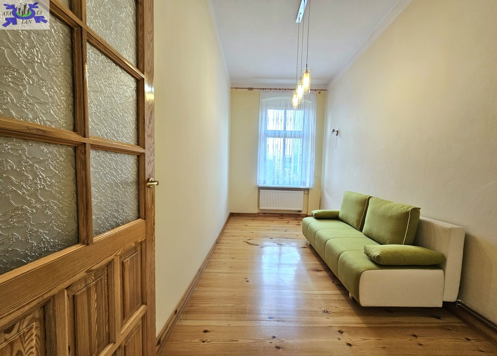 Wnętrze zachowało oryginalny charakter kamienicy - w bardzo dobrym stanie utrzymane są fragmenty oryginalnej drewnianej stolarki okiennej oraz piękna drewniana podłoga. Pozostała część okien została wymieniona na okna PCV, co zapewnia lepszą izolację i komfort użytkowania. Wysokie sufity nadają pomieszczeniom wyjątkowej przestronności i elegancji, a okna wychodzące na dwie strony świata gwarantują świetne doświetlenie o każdej porze dnia. Mieszkanie jest w stanie dobrym i daje możliwość własnej aranżacji według indywidualnych preferencji.
