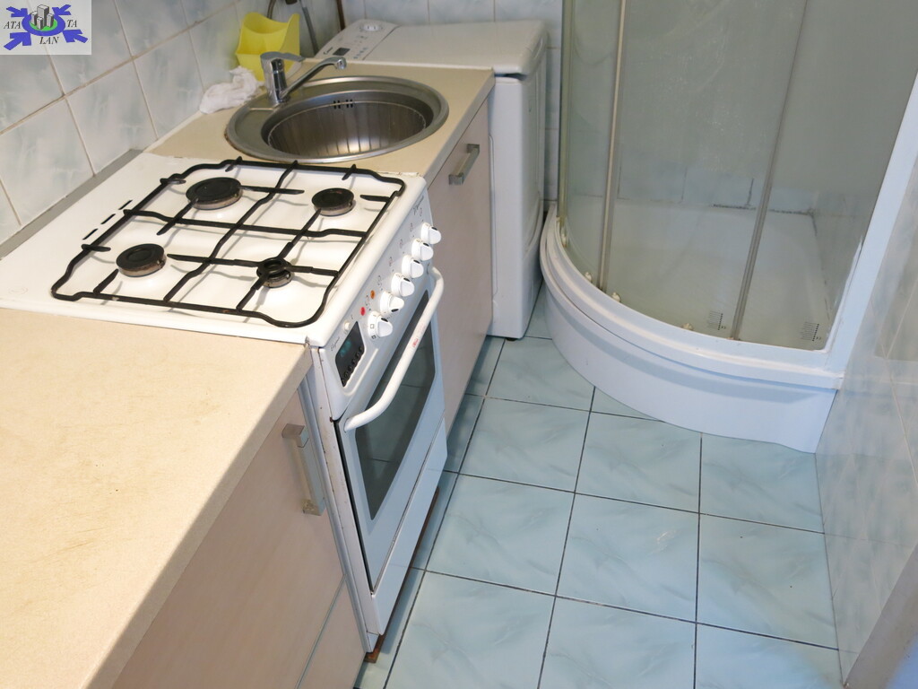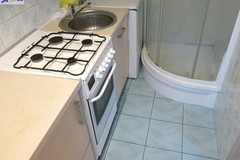 - kuchnię (w której zmieścił się prysznic i pralka),