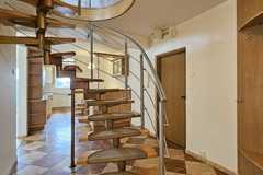 I poziom - 87 m2 kuchnia kompletnie umeblowana meblami na wymiar z pełnym wyposażeniem (lodówko-zamrażarka, kuchenka elektryczna, płyta grzewcza, zmywarka, pralka), mniejsza łazienka z kabiną prysznicową, pokój dzienny o pow. 24 m2 z balkonem oraz 2 niezależne pokoje o pow. 15 m2 każdy. W zabudowie szafy typu "komandor" - w przedpokoju oraz pokoju na górze.