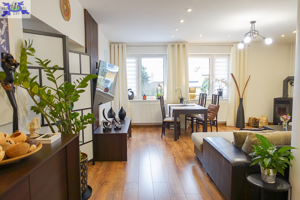Dom wolno stojący w klimatycznym, malowniczym, spokojnym otoczeniu. Nieruchomość otacza bardzo zadbany ogród z bogatymi nasadzeniami zapewniającymi prywatność i sprzyjającymi relaksowi. Wśród licznych roślin znajdziemy tu hortensje, rododendrony, róże, szkarłatki, trzmieliny, trawy ozdobne, perukowca, dwie piękne magnolie, piwonie drzewiaste, chiński niezwykle pachnący bez, trzy wierzby Iwa, wiśnię japońska, judaszowca, iglaki, a pośród nich fontanna i miejsce do grillowania oraz miejsce na jacuzzi, haki na dwie huśtawki, mocowanie do telewizora, głośniki na zewnątrz. Możliwość zamieszkania przez rodzinę dwupokoleniową lub prowadzenia działalności w przyziemiu.