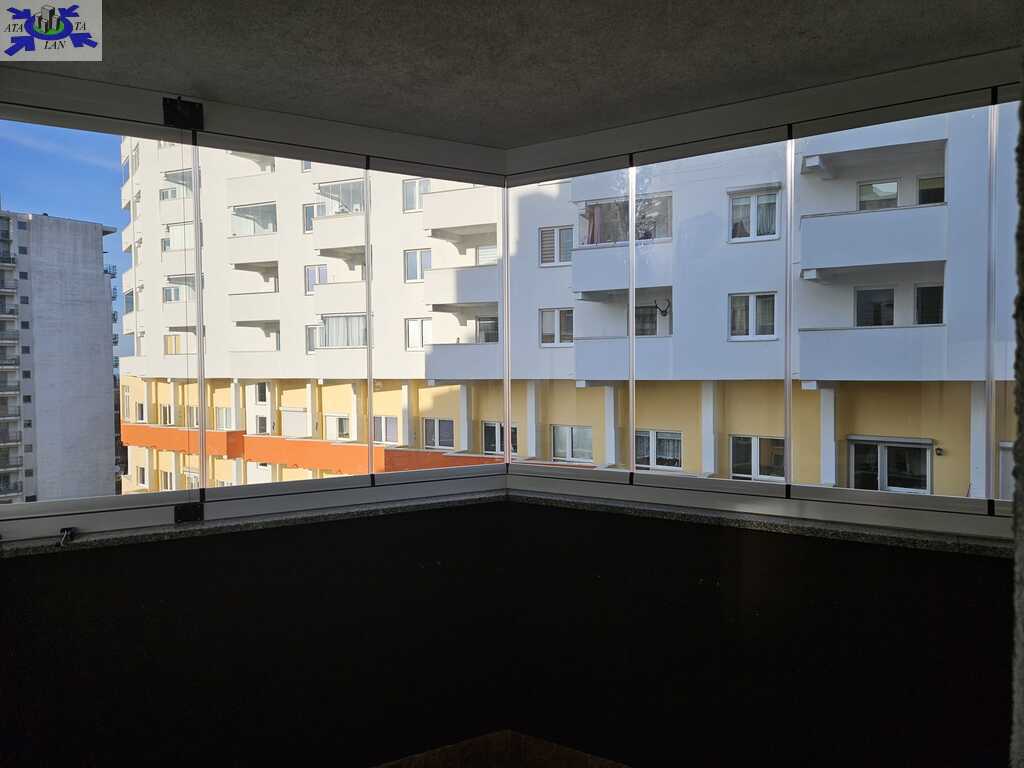*na balkonie wykonano bezramowy system zabudowy balkonu typu fińskiego-