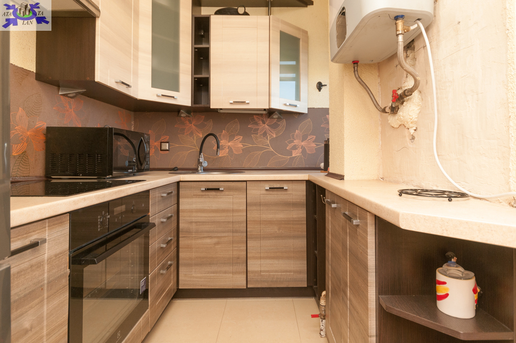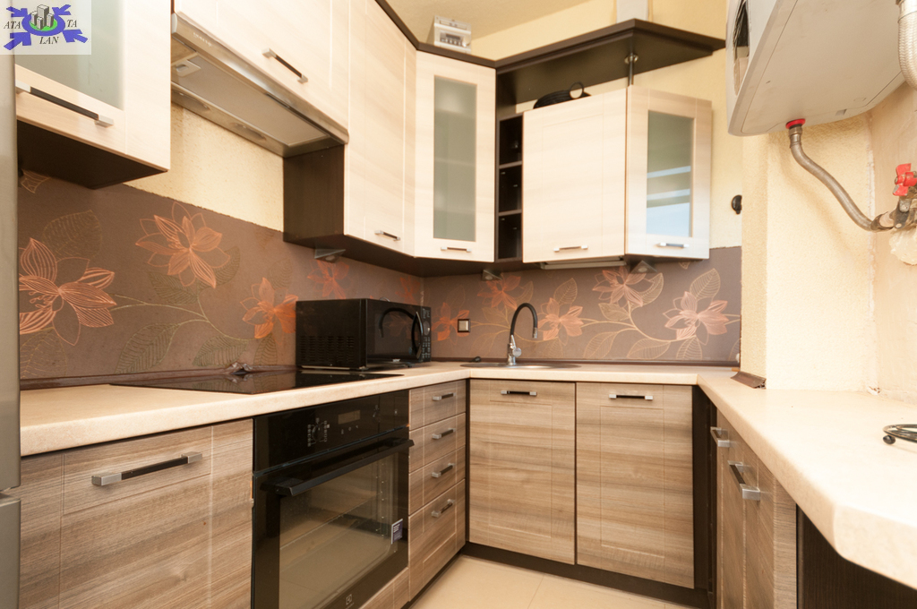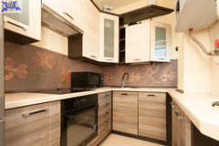 Duża wygodna sypialnia w kształcie kwadratu z dużą szafa i łożem małżeńskim. Pokój dzienny z rozkładanym narożnikiem i pozostałymi meblami jak na zdjęciu. Z części dziennej wchodzi się do widnej kuchni - meble kuchenne, płyta indukcyjna, piekarnik elektryczny, lodówko-zamrażarka, mikrofalówka.
