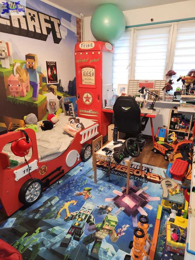 Pokój dla dziecka zrobiony tematyczny według Maincraft, widoczny na zdjęciach. Mieszkanie czyste i zadbane.