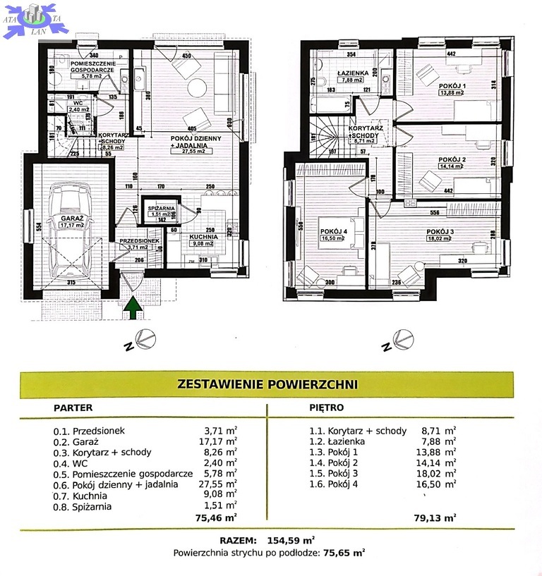 Dodatkowo powierzchnia strychowa ok. 75,65 m2 po podłodze.