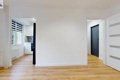 Podłogi w pokoju, kuchni i korytarzu wyłożone panelami.