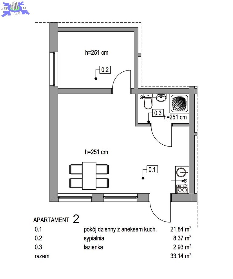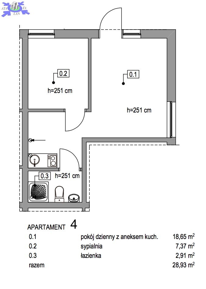 - powierzchnie apartamentów - 33,14m2, 33,14m2, 26,92m2, 28,93m2