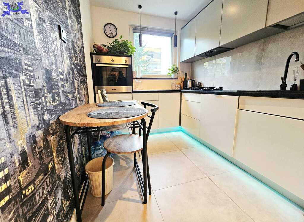 jasne i słoneczne, nowocześnie wykończone 2. pokojowe mieszkanie, usytuowane na 1. piętrze niskiego budynku z 1987 roku.