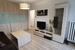 - salon - rozkładana kanapa, duża szafa w zabudowie, stolik kawowy, TV, witryna,