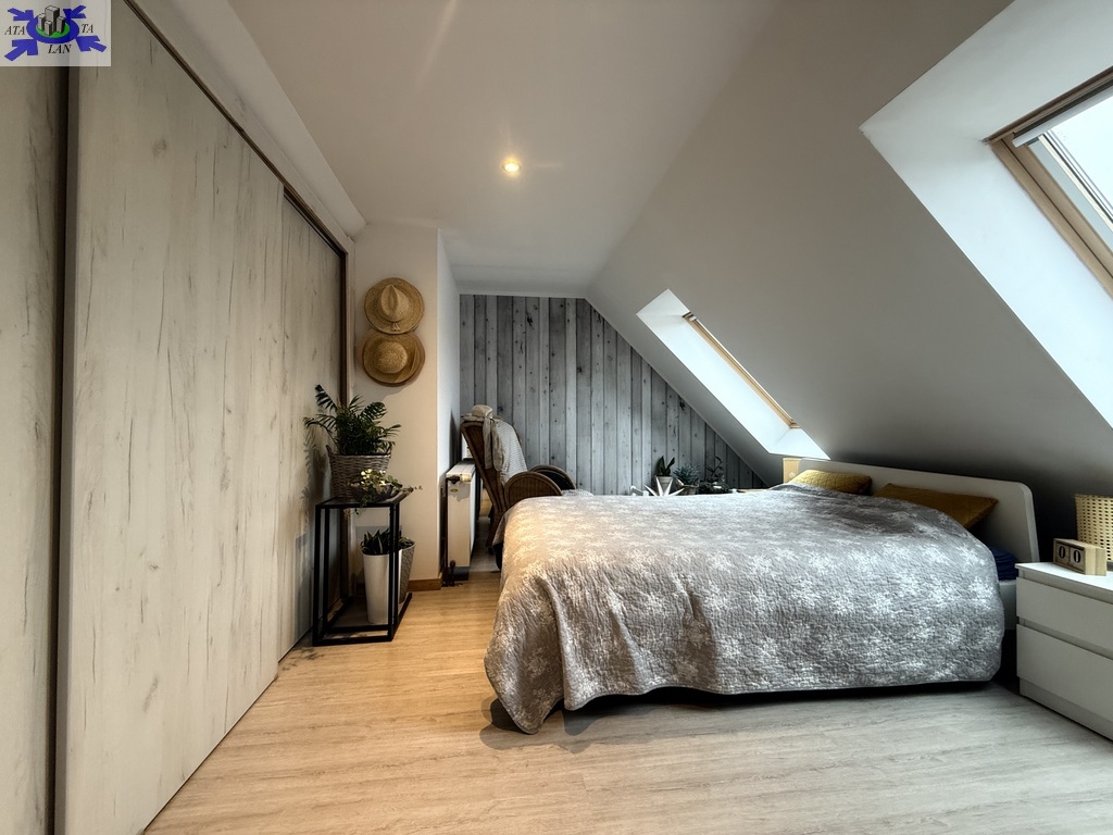 Na drugim piętrze znajduje się duża sypialnia z szeroką szafą i garderobą.
