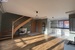 Na pierwszym poziomie jest otwarta, duża przestrzeń strefy dziennej z kuchnią oraz wyjściem na taras, łazienka.