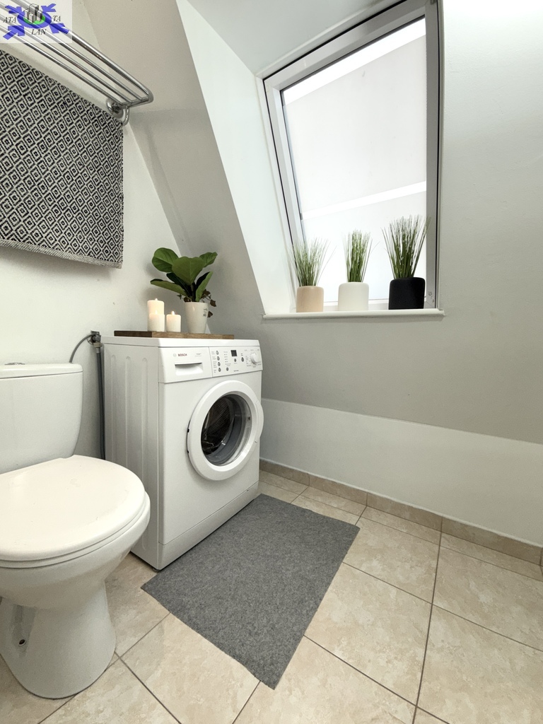 - Łazienka zaskakująco duża, komfortowa, z prysznicem