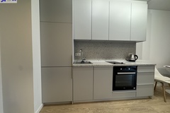 Aneks kuchenny wyposażony w meble w zabudowie, piekarnik, lodówkę, płytę indukcyjną