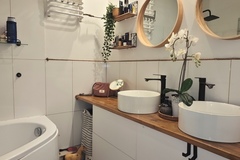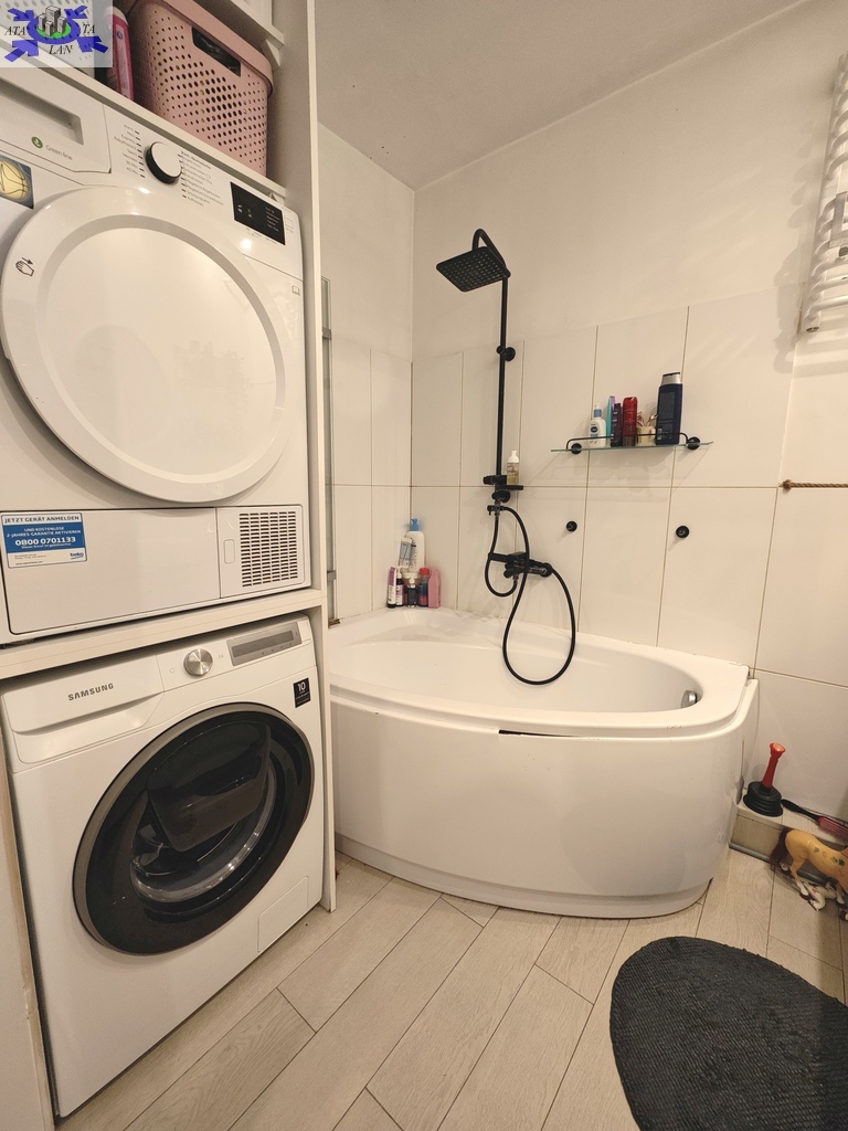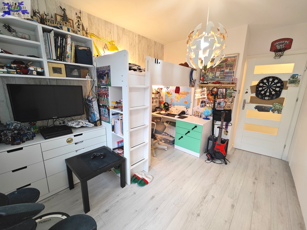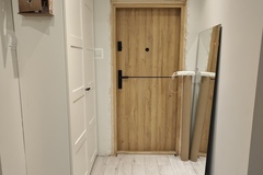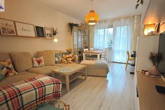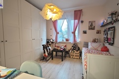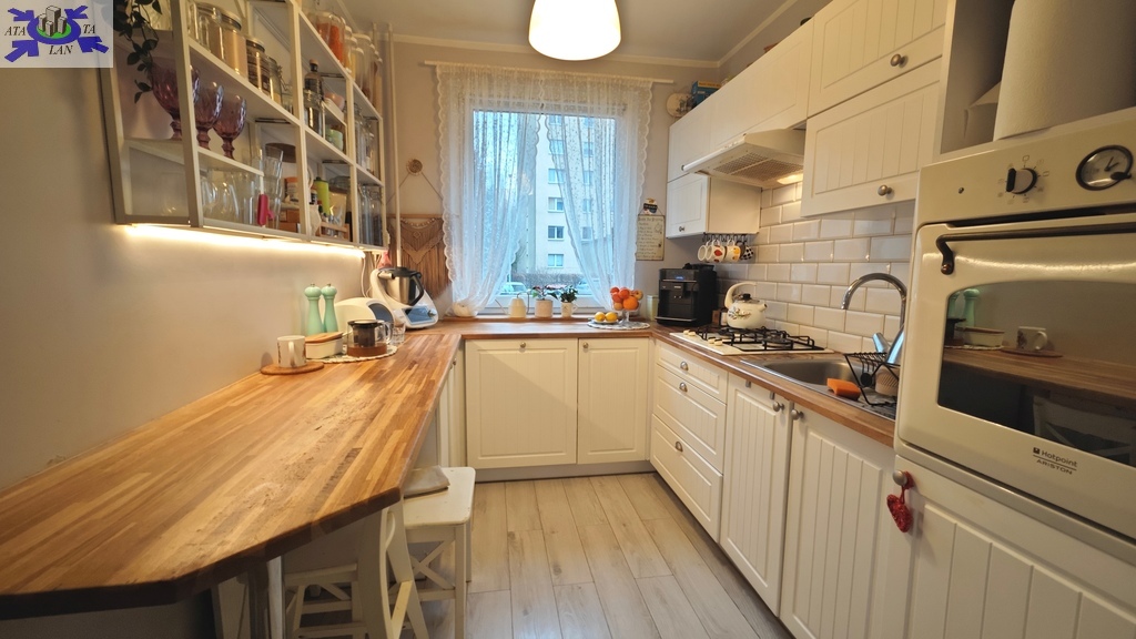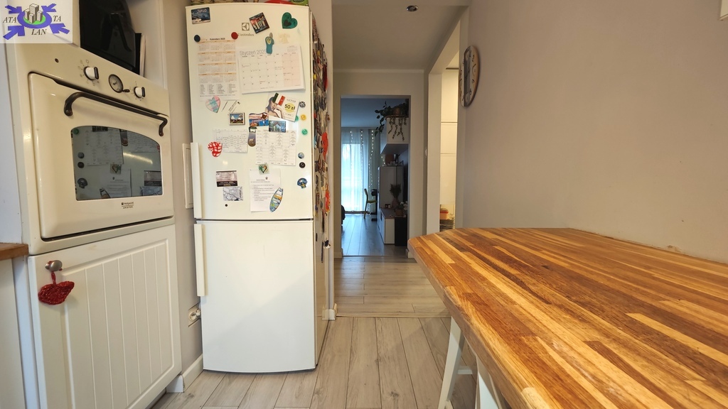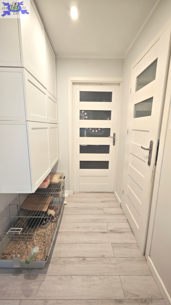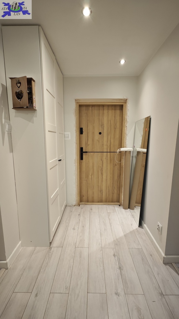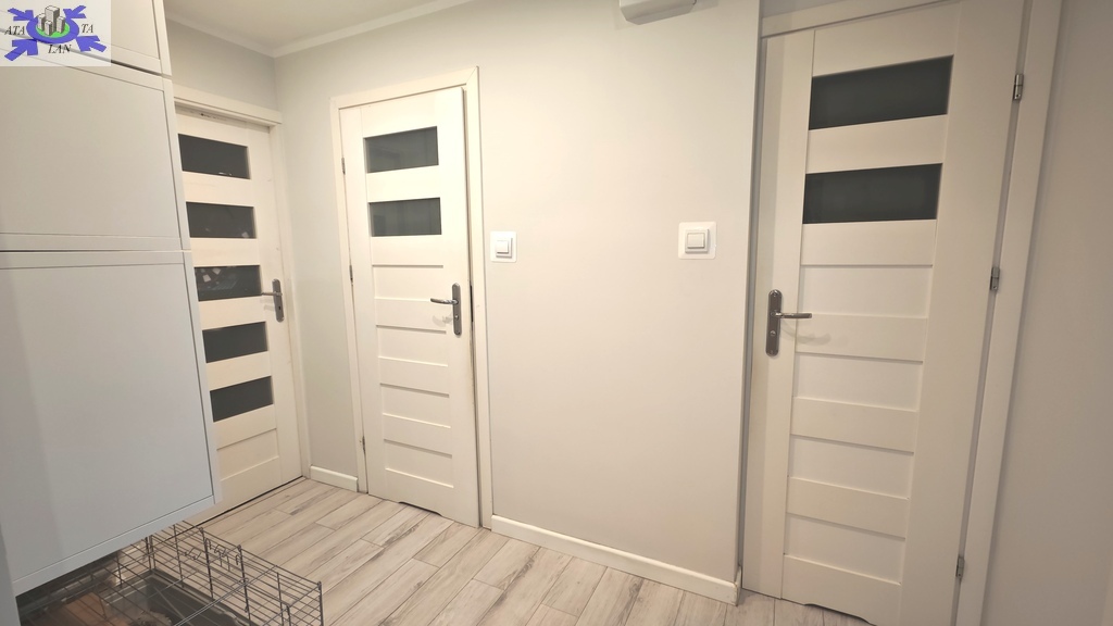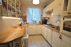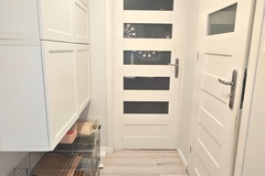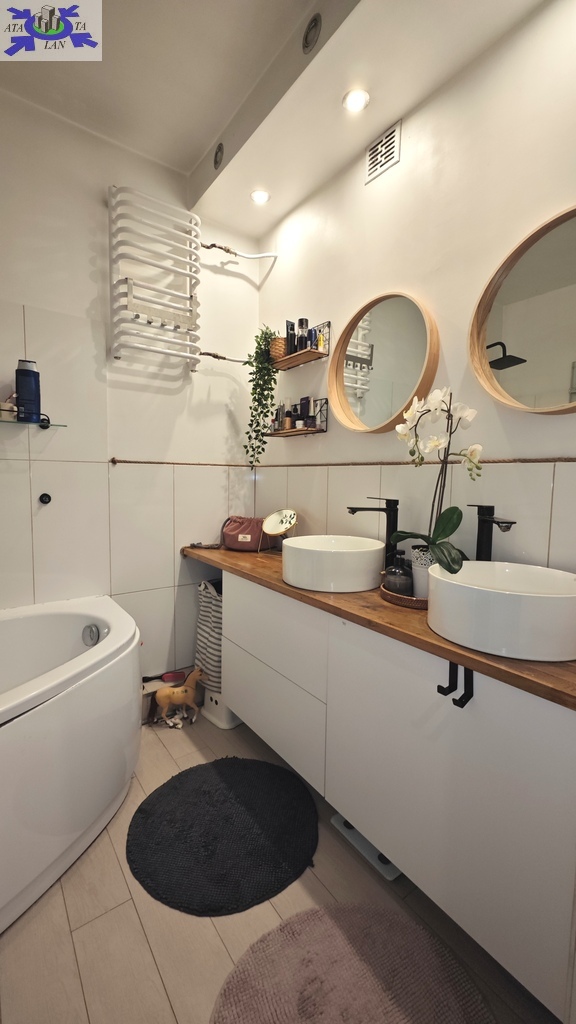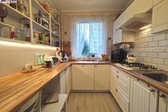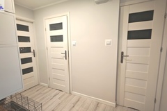 Mieszkanie oferowane jest do sprzedaży w bardzo dobrym standardzie. We wszystkich pokojach i przedpokoju - jednolite panele na podłodze. Ściany gładzone i pomalowane (złamana biel). W kuchni pozostaje umeblowanie kuchenne wykonane na wymiar (plus dębowy blat) wraz ze sprzętem AGD m.in. lodówka Electrolux, zmywarka Bosch, płyta grzewcza gazowa i piekarnik elektryczny (retro) firmy Hotpoint Ariston oraz okap Amica. Dodatkowo w kuchni znajdują się filtry na wodę schowane w szafce pod zlewozmywakiem. W obu sypialniach pozostają duże i szerokie szafy (obie wykonane na szerokość całej, jednej ściany). W łazience kafle ala panele na podłodze oraz częściowo jasne kafle na ścianach plus wanna z deszczownicą, dwie umywalki na blacie dębowym z szafkami i szufladami pod blatem, pralka z suszarką stojące na słupku wykonanym na wymiar oraz grzejnik drabinkowy. W toalecie kafle ala drewno na podłodze oraz ścianie za podwieszaną muszlą plus umywalka i nad nią szafka z lustrem. w przedpokoju pozostają dwie kolejne nowoczesne szafy (PAX IKEA).