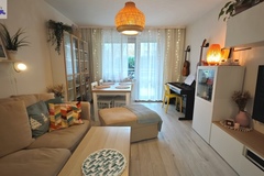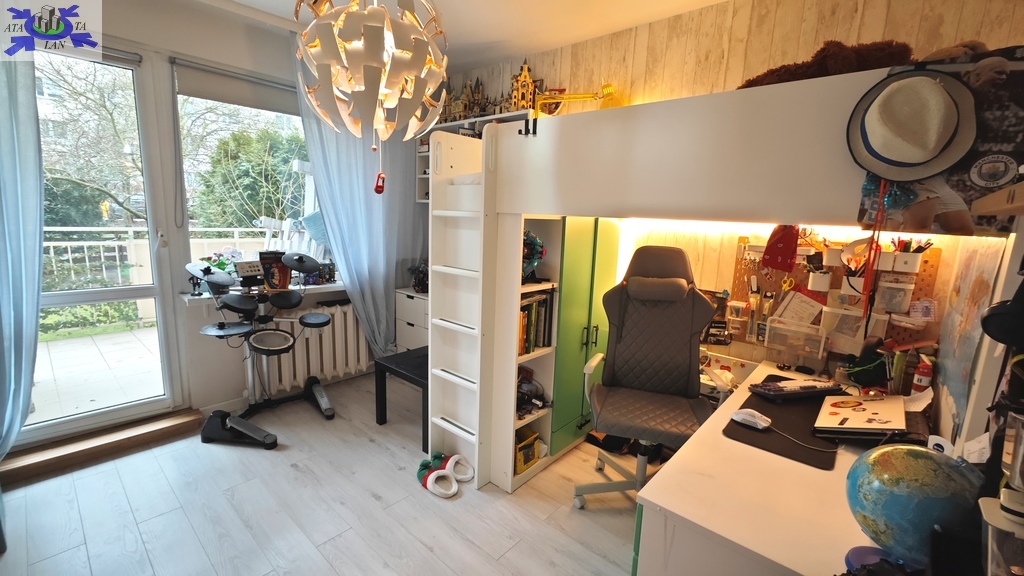 Mieszkanie składa się z dużego salonu z wyjściem na słoneczny taras i zejściem do ogródka, dwóch osobnych sypialni (jedna również z wyjściem na taras), kuchni z oknem, łazienki, osobno toalety oraz przedpokoju. To właśnie taras o powierzchni około 18m2 z bezpośrednim zejściem do ogródka o powierzchni około 66m2 jest niewątpliwie największym atutem oferty !!!