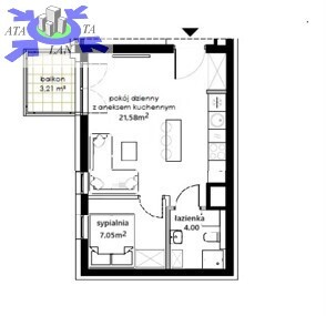 - salon połączony z aneksem kuchennym oraz wyjściem na balkon