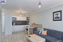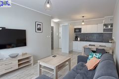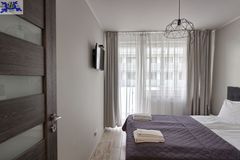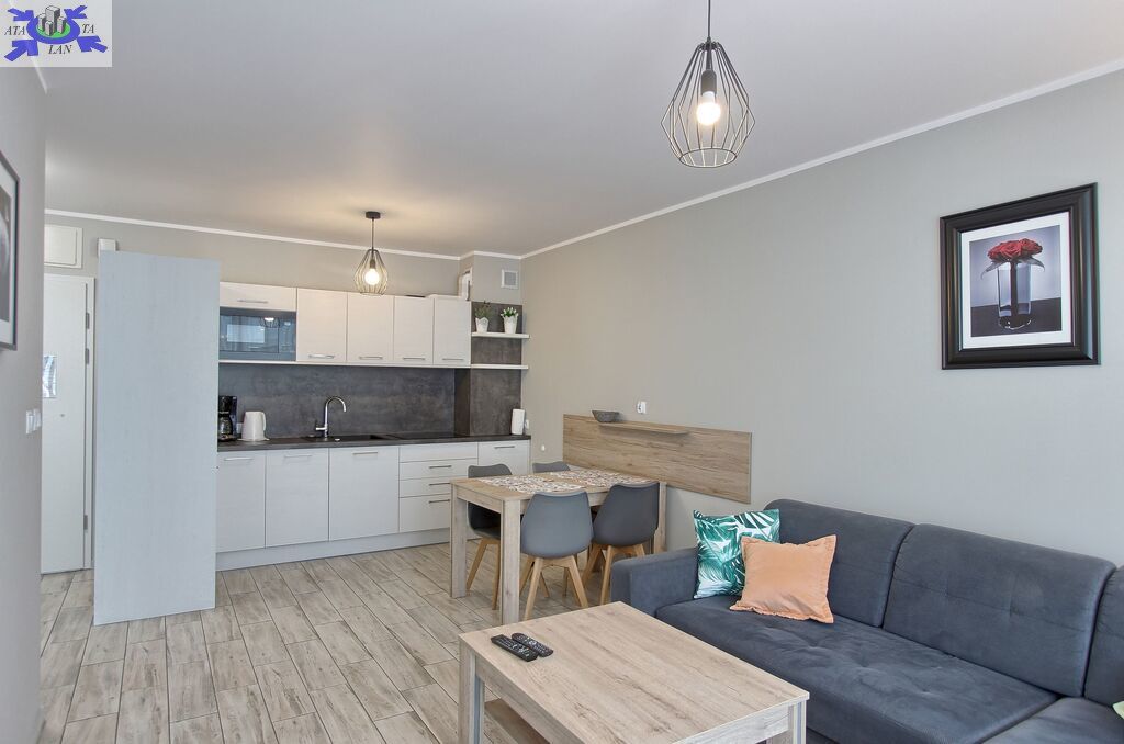 Apartament umeblowany, ładnie i wygodnie urządzony. Powierzchnia to prawie 38 m2. Składa się z salonu z rozkładaną kanapą, w pełni wyposażonego aneksu kuchennego oraz sypialni z łożem małżeńskim i łazienki z prysznicem. Dodatkowym atutem jest taras na który można wyjść z sypialni, jak i z salonu. W budynku znajduje się siłownia, rowerownia, a na dachu taras z leżakami. Teren obiektu jest ogrodzony. Budynek wybudowany przez solidnego kołobrzeskiego dewelopera, dobrze zarządzany. Koszty utrzymania to około 600 zł. Ogrzewanie i ciepła woda z sieci miejskiej.