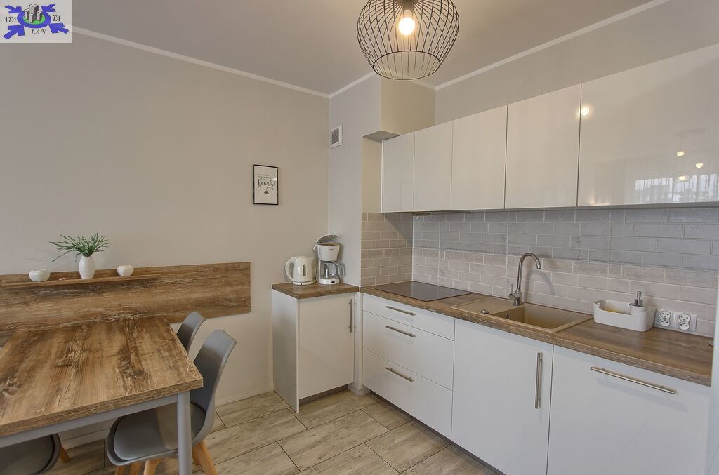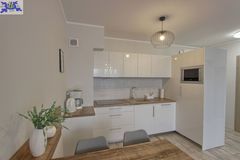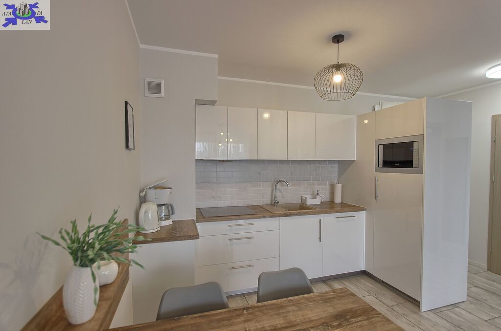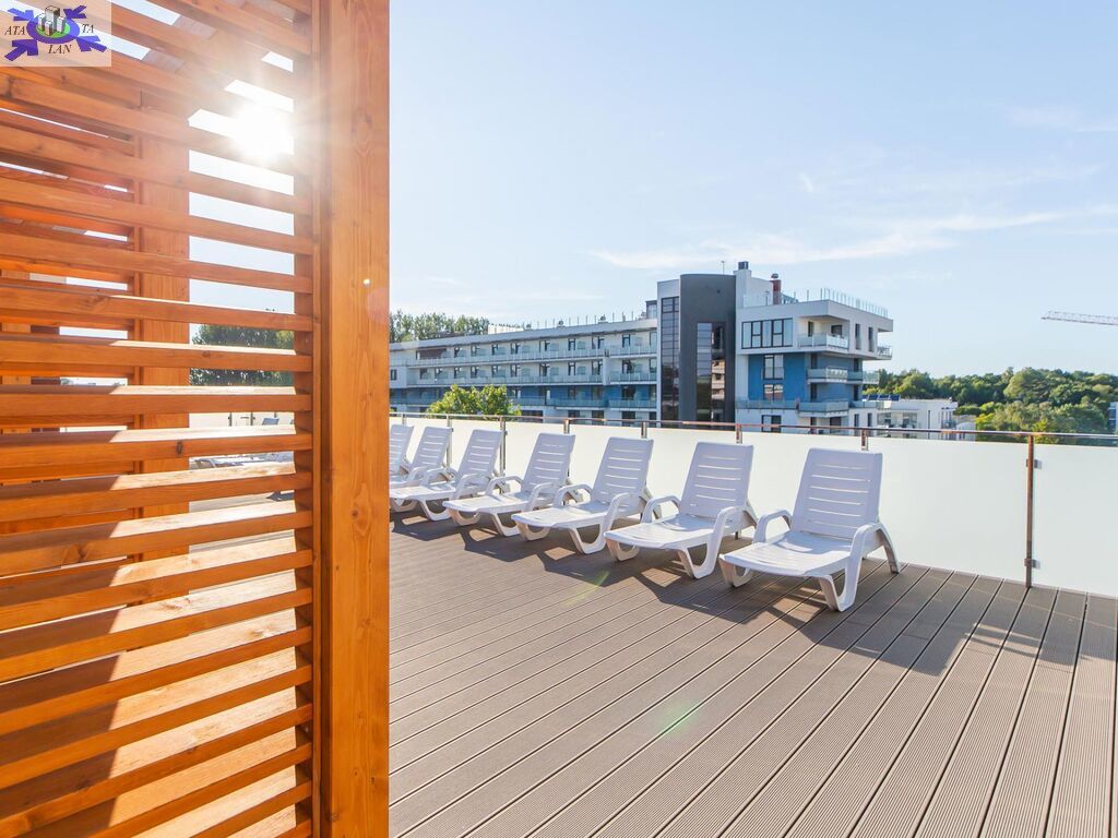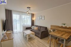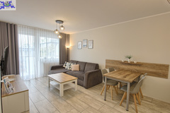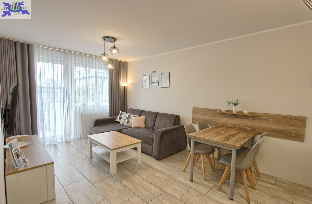 Apartament umeblowany, ładnie i wygodnie urządzony. Powierzchnia to prawie 38 m2. Składa się z salonu z rozkładaną kanapą, w pełni wyposażonego aneksu kuchennego oraz sypialni z łożem małżeńskim i łazienki z prysznicem. Dodatkowym atutem jest taras na który można wyjść z sypialni, jak i z salonu. W budynku znajduje się siłownia, rowerownia, a na dachu taras z leżakami. Teren obiektu jest ogrodzony. Budynek wybudowany przez solidnego kołobrzeskiego dewelopera, dobrze zarządzany. Koszty utrzymania to około 600 zł. Ogrzewanie i ciepła woda z sieci miejskiej.