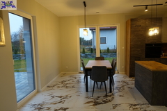 Dom ma bardzo korzystny rozkład pomieszczeń i jest wykończony w bardzo dobrym standardzie.