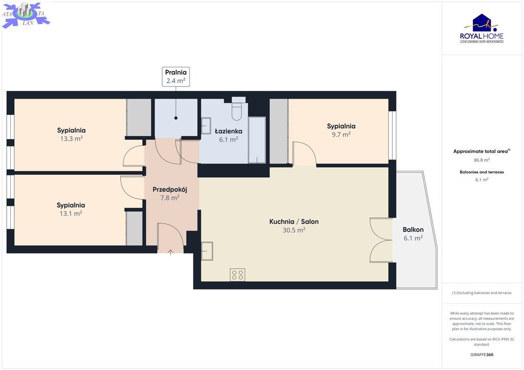 * Trzy osobne sypialnie gwarantujące komfortowe warunki do odpoczynku.