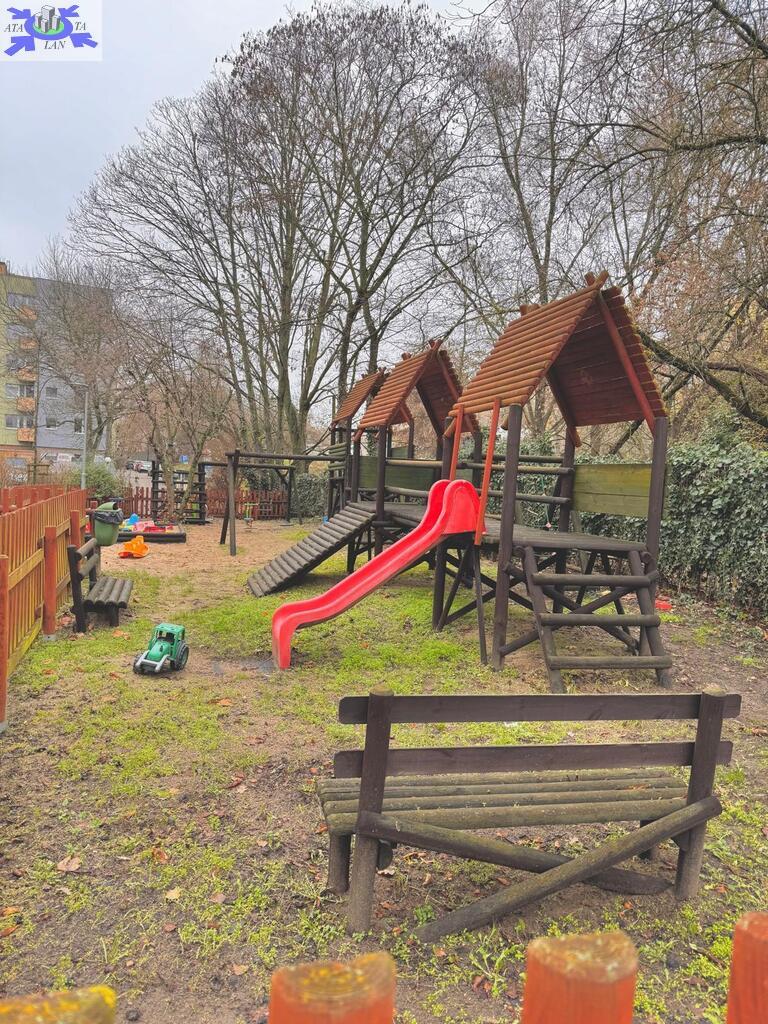 Teren wokół budynku ogrodzony. Miejsca postojowe znajdują się pod budynkiem, na terenie zamkniętym za szlabanem.