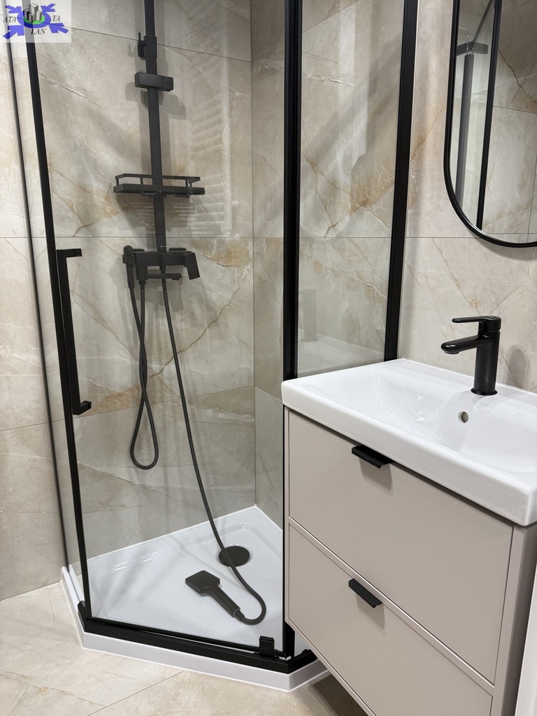 - łazienka z kabiną prysznicową oraz wc w glazurze i terakocie