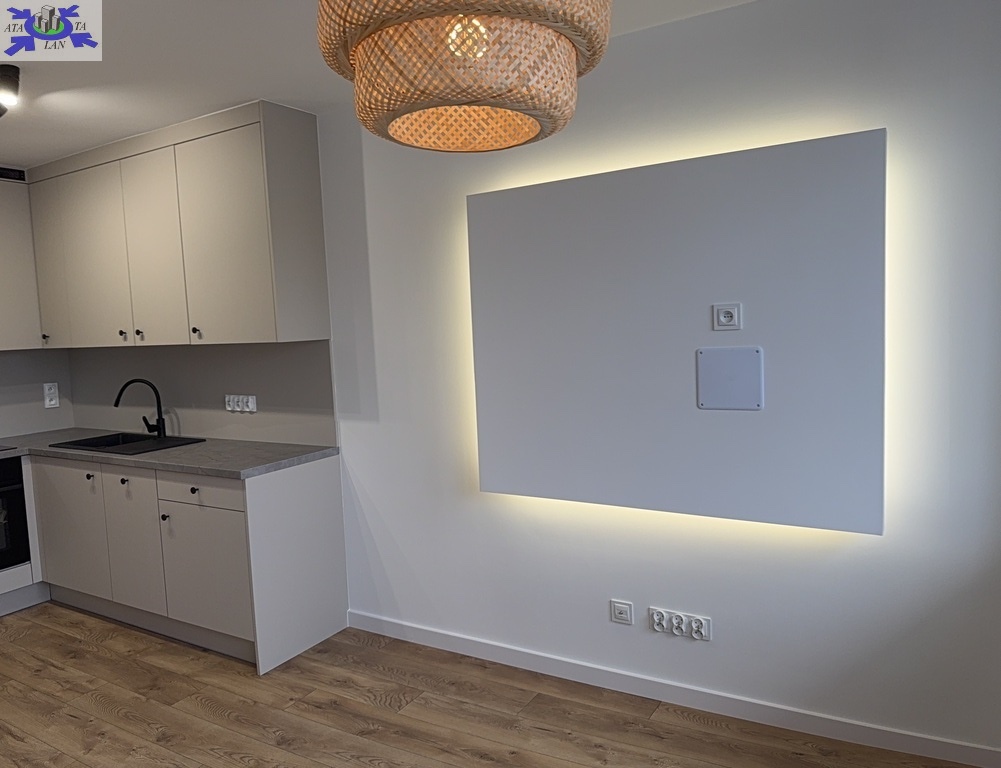 ściany gładzone i malowane na podłogach panele wysokiej klasy.