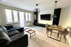 Mieszkanie składa się z sypialni i osobnego przestronnego salonu, z którego przedostać się możemy na balkon typu loggia, którym udać możemy się na własny ogrodzony ogródek. Duże okna nadają wnętrzu niepowtarzalny charakter i zapewniają mnóstwo naturalnego światła. Wykorzystanie minimalistycznego designu sprawia, że przestrzeń jest funkcjonalna i bardzo estetyczna.