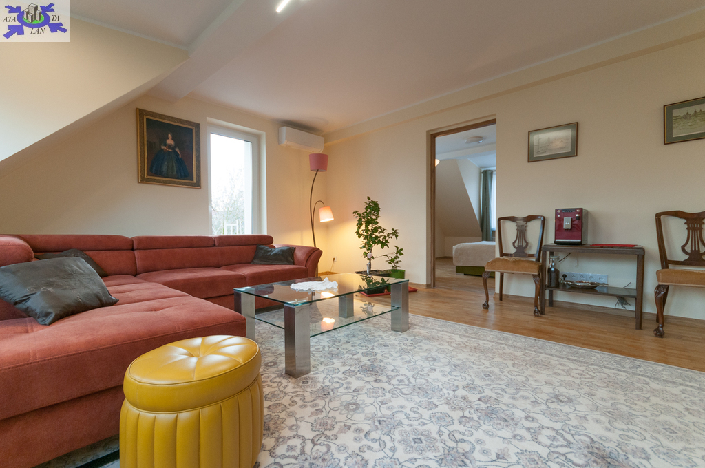 Trzy osobne sypialnie, centralny salon z kominkiem i wyjściem na balkon. Klimatyzacja zamontowana zarówno w salonie jak i sąsiadującej sypialni. Wygodna łazienka z kabiną prysznicową. Widna kuchnia z meblami w zabudowie, zmywarka, pralka, piekarnik. Mieszkanie z wystawią okien wschód-południe-zachód.