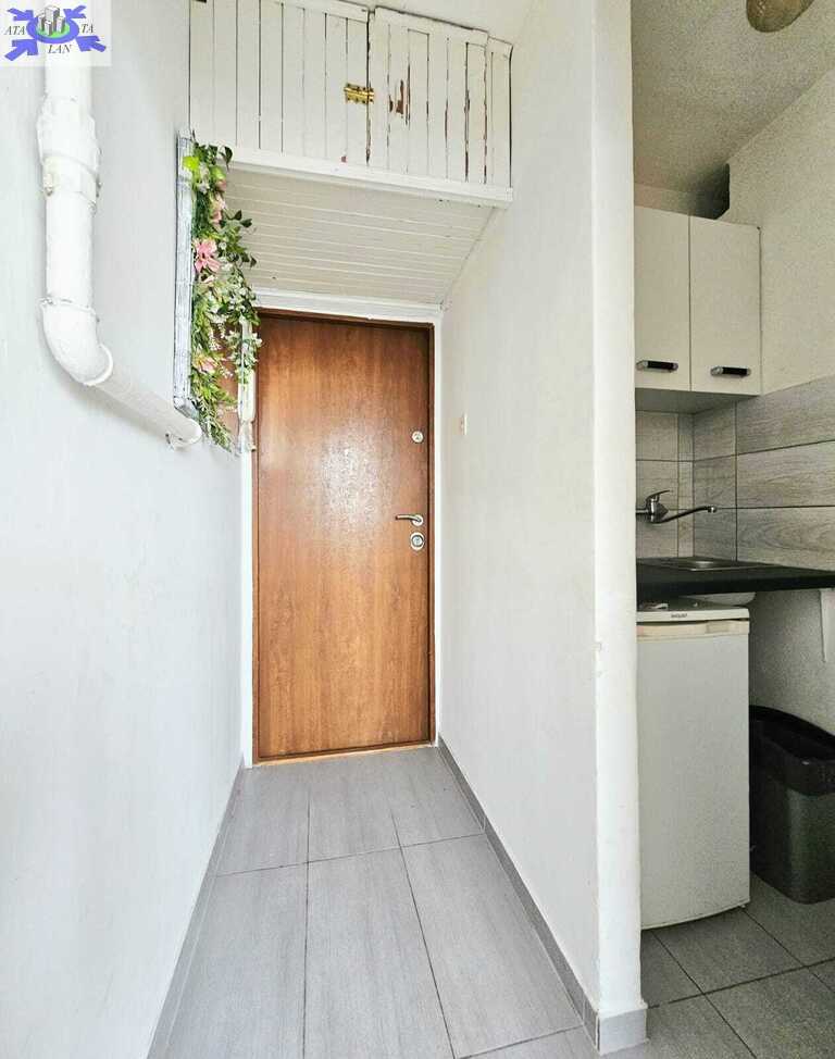 1. pokojowe mieszkanie, znajdujące się na 8. piętrze wysokiego bloku, zlokalizowane na terenie dzielnicy Nowe Miasto w Szczecinie.