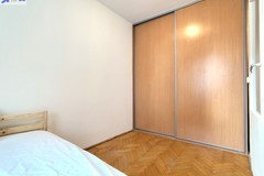 Niewielka sypialnia mieści podwójne łóżko oraz pojemną szafę typu komandor. Wszystkie meble oraz sprzęty widoczne na zdjęciach pozostają w mieszkaniu.