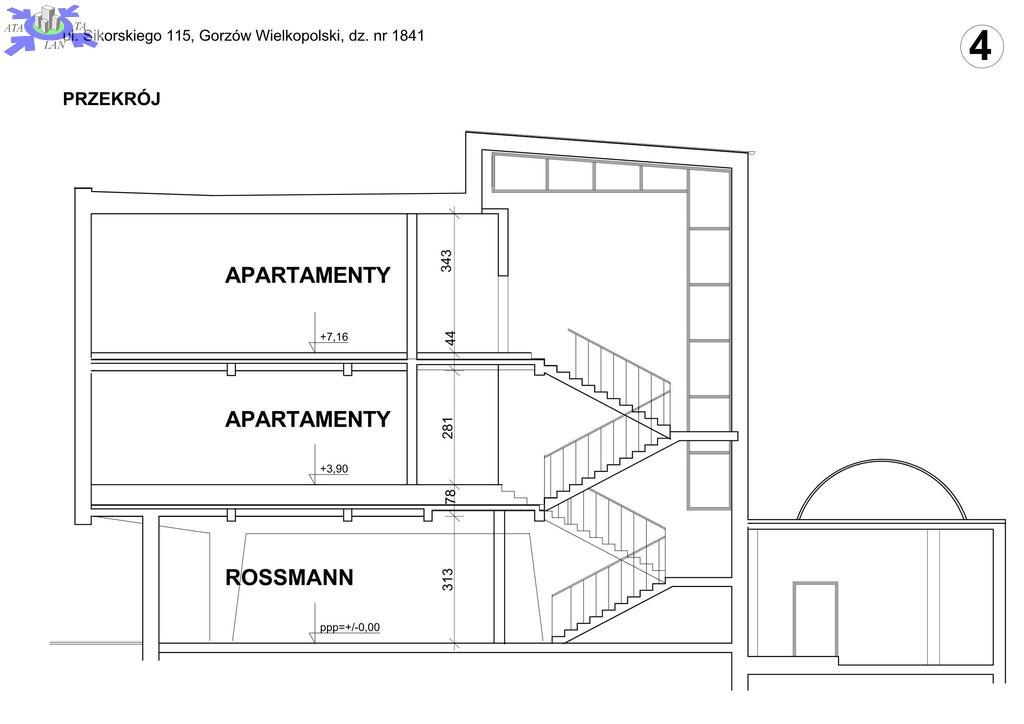 Zostały wydane warunki dobudowania 3 piętra, zwiększające powierzchnię nieruchomości o dodatkowe 500 m2 (do łącznej pow. 2430 m2), co daje jeszcze większe możliwości inwestycyjne.