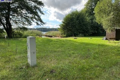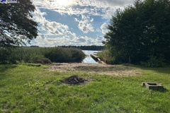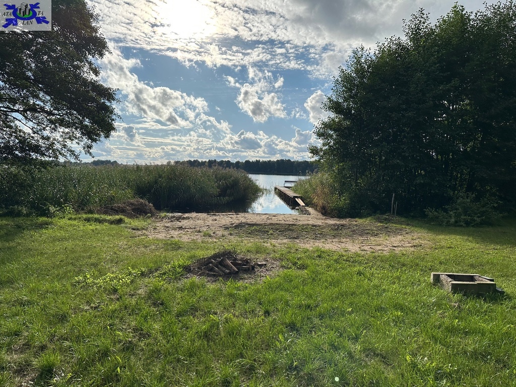 Działka rekreacyjna położona nad jeziorem z własną linią brzegową oraz pomostem.