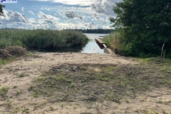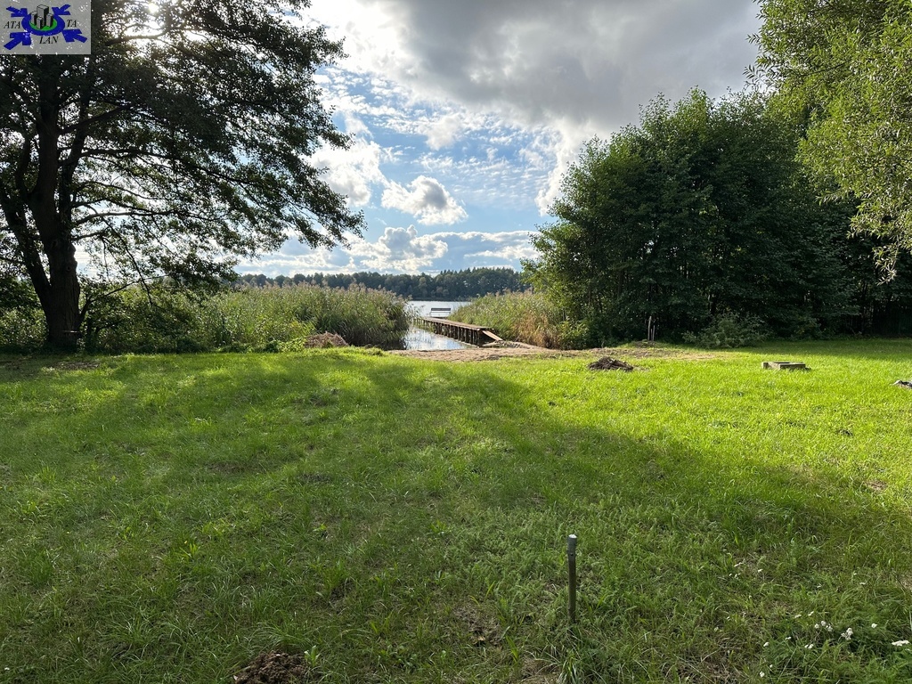Działka o regularnym kształcie prostokąta, co pozwala na jej łatwe zagospodarowanie, a jej dłuższa granica przylega do jeziora.