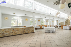 Gruntowna modernizacja (2009 r.) Kompleksowy remont parteru budynku hotelowego oraz 15 pokoi wraz z łazienkami. Winda i dostępność W ramach rozbudowy dobudowano nowoczesne, przeszklone klatki schodowe. Jedna z nich została wyposażona w cichobieżną windę osobową, co czyni obiekt w pełni dostępnym dla osób niepełnosprawnych, seniorów oraz pacjentów wymagających opieki. Komfort zakwaterowania Pokoje hotelowe są jasne i przestronne, a większość z nich posiada prywatne balkony z widokiem na park, co jest kluczowym atutem przy długoterminowych pobytach (np. w domu seniora lub klinice rehabilitacyjnej).