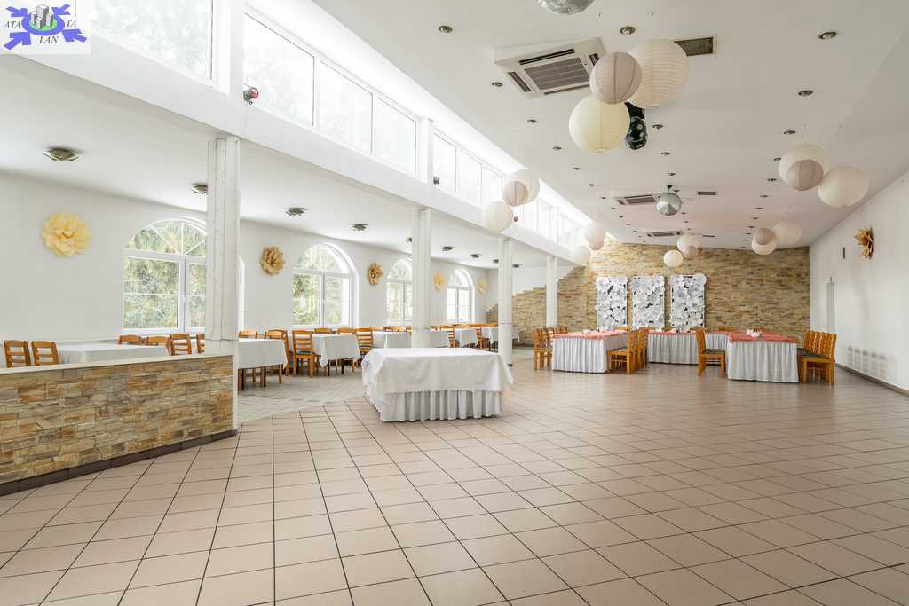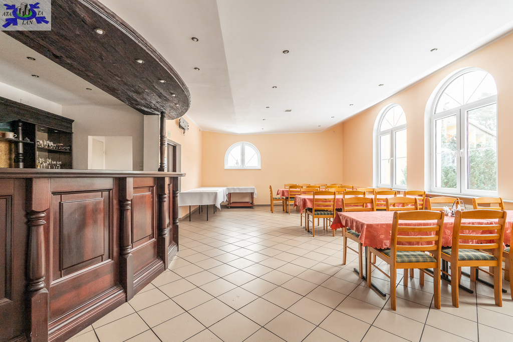 Budynek Hotelowy (3 kondygnacje, 1 274,2 m2) Oferuje 40 pokoi (2 i 3-osobowych) z pełnym węzłem sanitarnym. Idealny do adaptacji na pokoje opieki lub luksusowe apartamenty hotelowe. Budynek Gastronomiczny (Sala Weselna, 1 034,05 m2) Reprezentacyjna, klimatyzowana sala z pełnym zapleczem kuchennym, zdolna obsłużyć eventy na 100 osób. Budynek Garażowy (190 m2) 6 stanowisk postojowych, zapewniających zaplecze logistyczne dla obiektu.