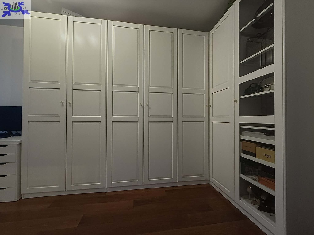 -przestronny przedpokój z dużą szafą w zabudowie, zapewniającą doskonałą przestrzeń do przechowywania.
