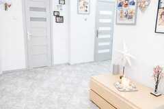 Bardzo duży, przestronny korytarz z szafą w zabudowie